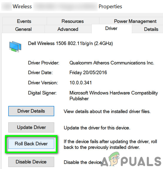 Open Properties of the Wireless Device - Now navigate to the Driver tab and click on the Roll Back Driver button.