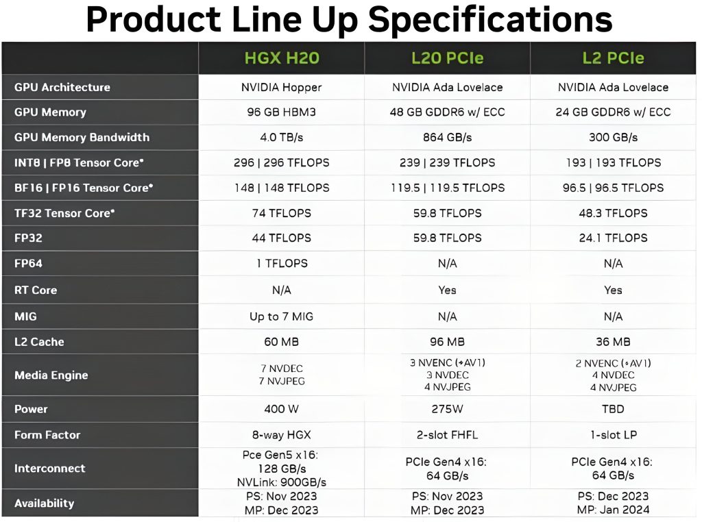 NVIDIA Prepping H20, L20 & L2 Lineup of AI GPUs