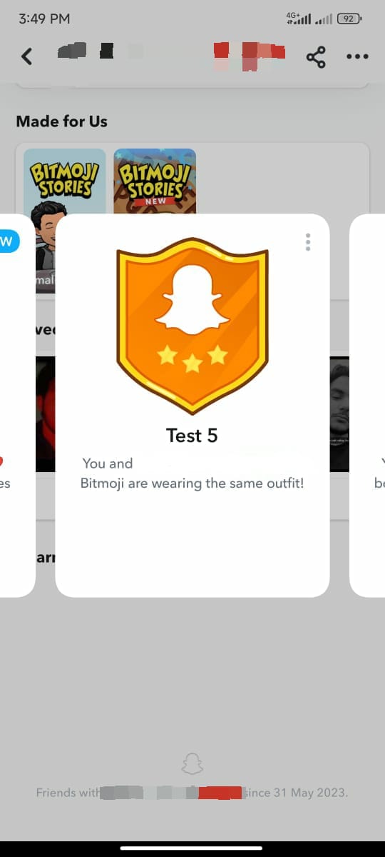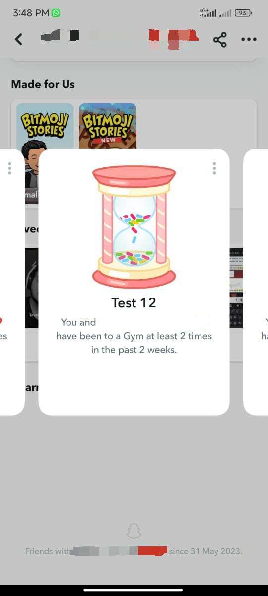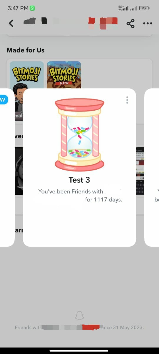The second one was labelled “Test 3“, and said “You have been friends with [Your Friend] for 1117 days.” Looks more like a friendship streak of over three years, but with the random number, it almost feels as it it was written simply for the purpose of testing.