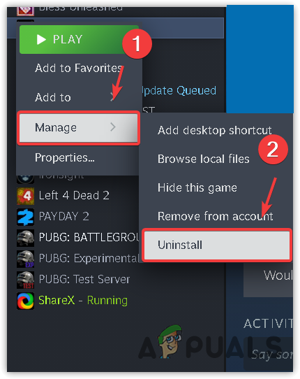 - Right-click New World, hover over manage, and click Uninstall. Confirm your choice when prompted.
