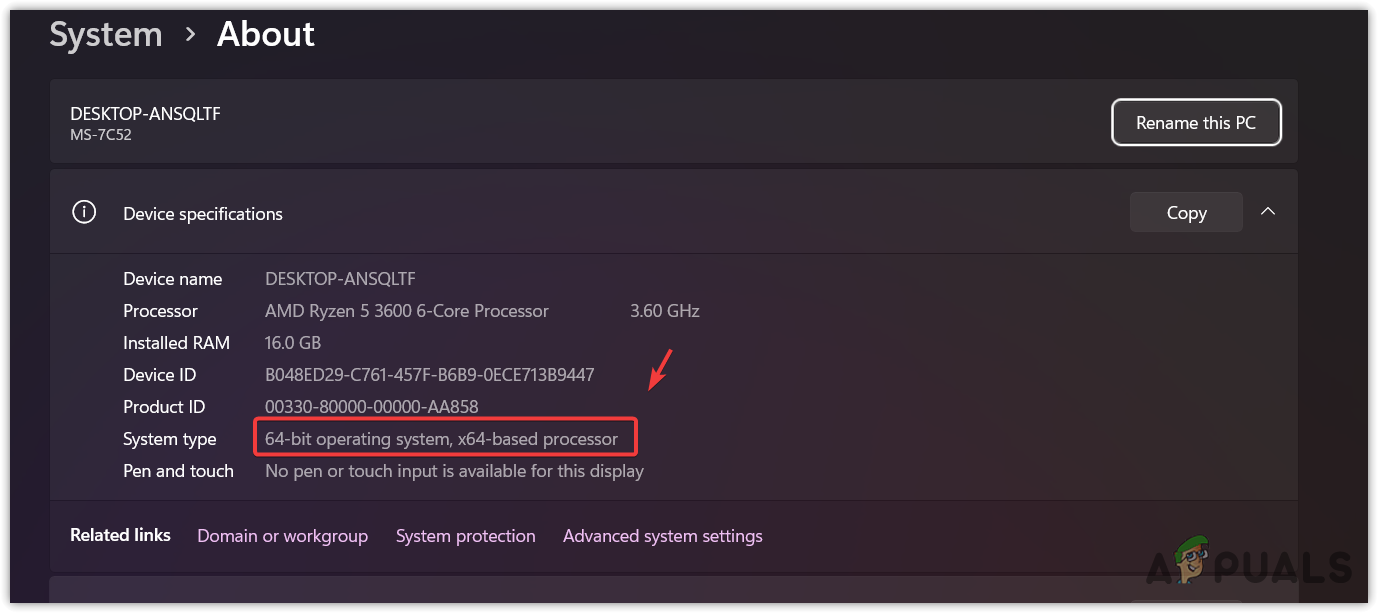 - Here, you will see all the system specs, including the system type.
