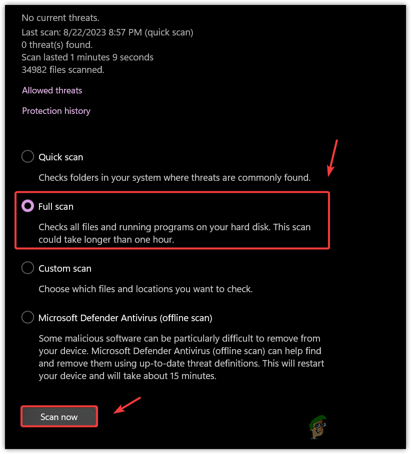 Select Full Scan and click the Scan Now option.