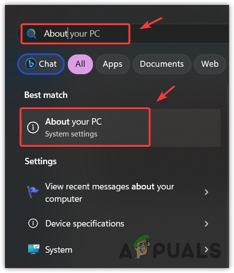- To find out the system type, click the Start Menu and type About.