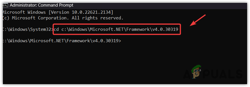 For 32-bit: cd c:\Windows\Microsoft.NET\Framework\v4.0.30319 For 64-bit: cd c:\Windows\Microsoft.NET\Framework64\v4.0.30319
