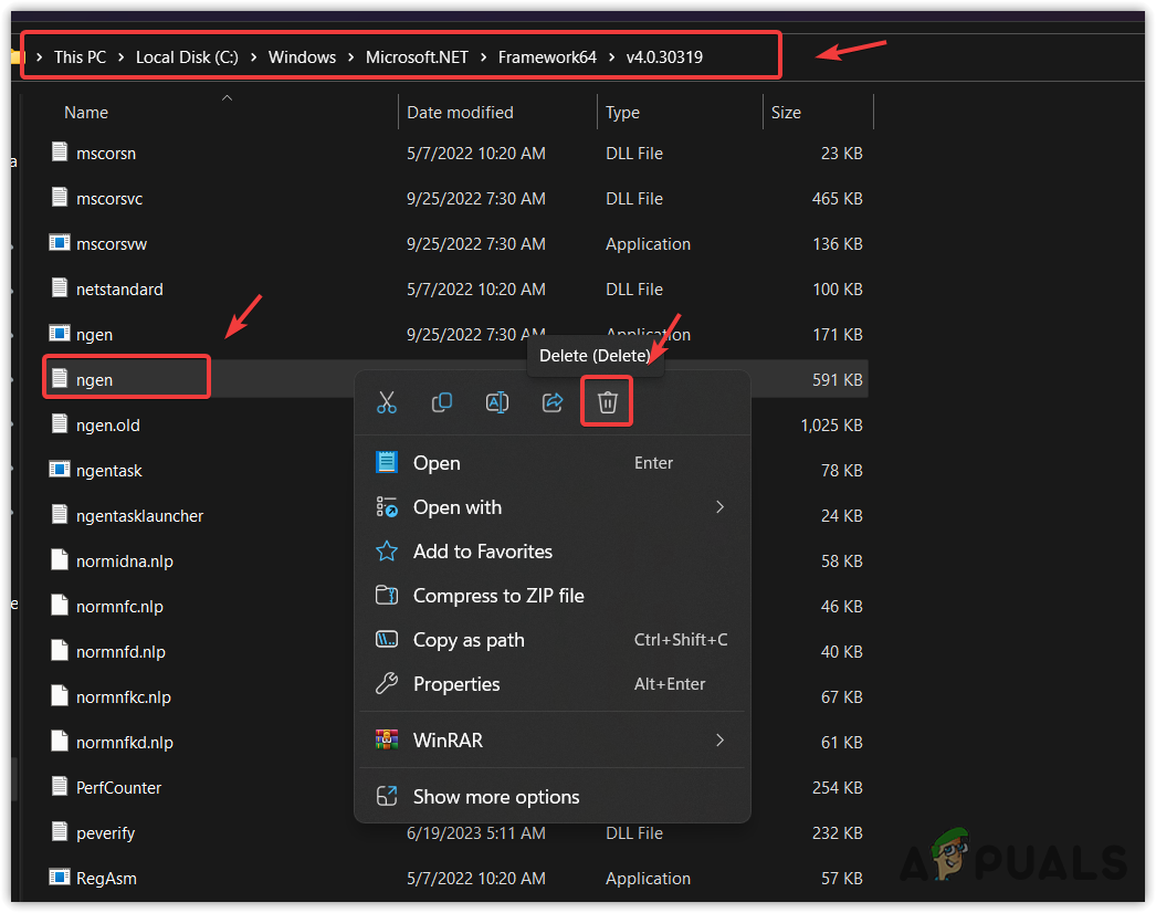 The Ngen text file contains the instructions that ngen.exe needs to proceed. One of the affected users has confirmed that removing the ngen text file resolved the high CPU usage issue. Therefore, in this step, we will try deleting the Ngen text file. Follow the instructions to remove the ngen text file.