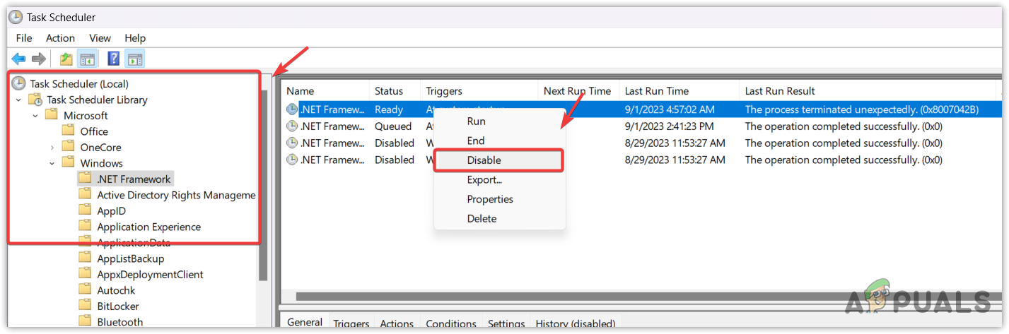 - Use the left menu and navigate to Task Scheduler Library > Microsoft > Windows > .Net Framework.