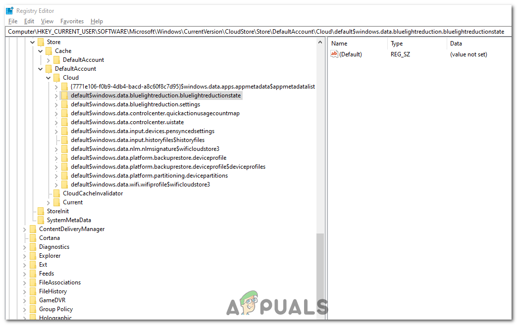 Computer\HKEY_CURRENT_USER\SOFTWARE\Microsoft\Windows\CurrentVersion\CloudStore\Store\DefaultAccount\Cloud