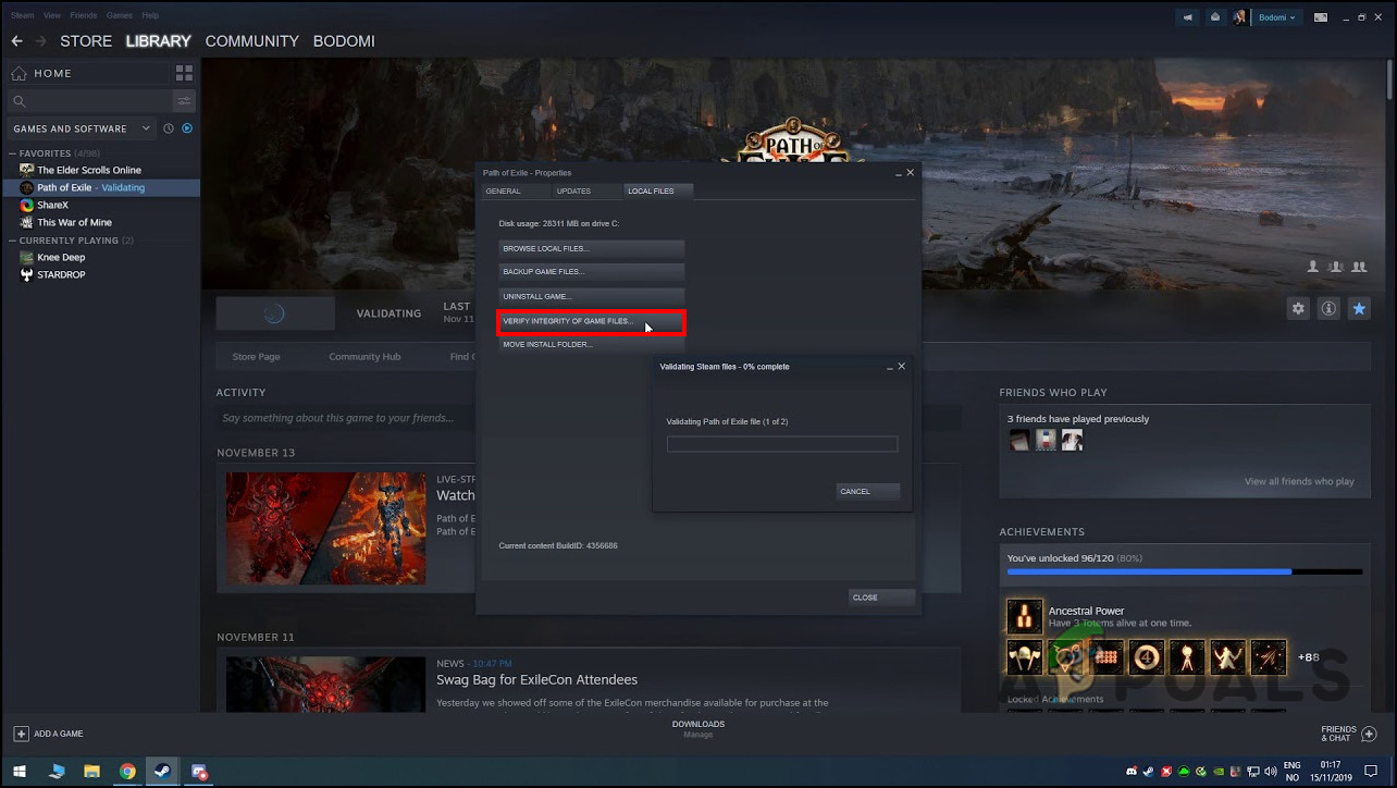 - Next, click on Verify integrity of game files in the Local file section.
