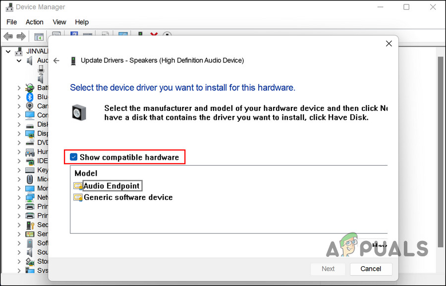 Show compatible hardware option - Pick Generic Software device and click Next.