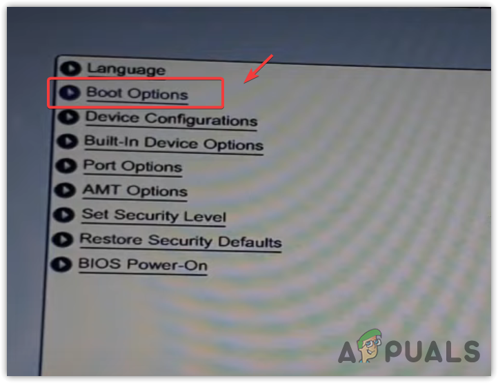 - Then, navigate to the boot option settings. You can find it under the Advanced Boot Options or boot options.
