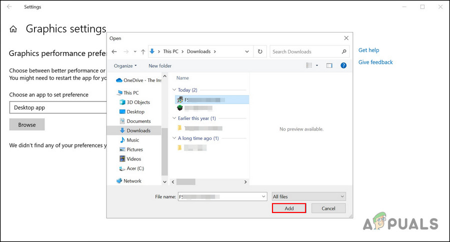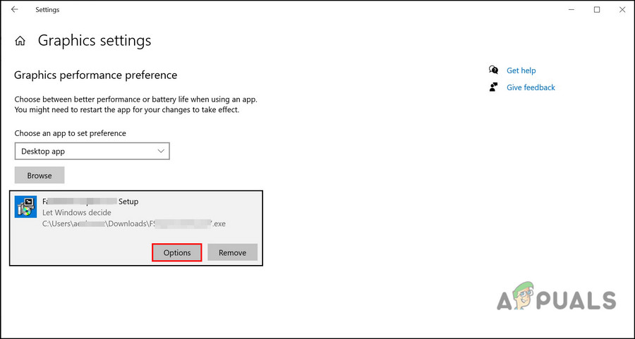 Click Browse in Graphics Performance Preference