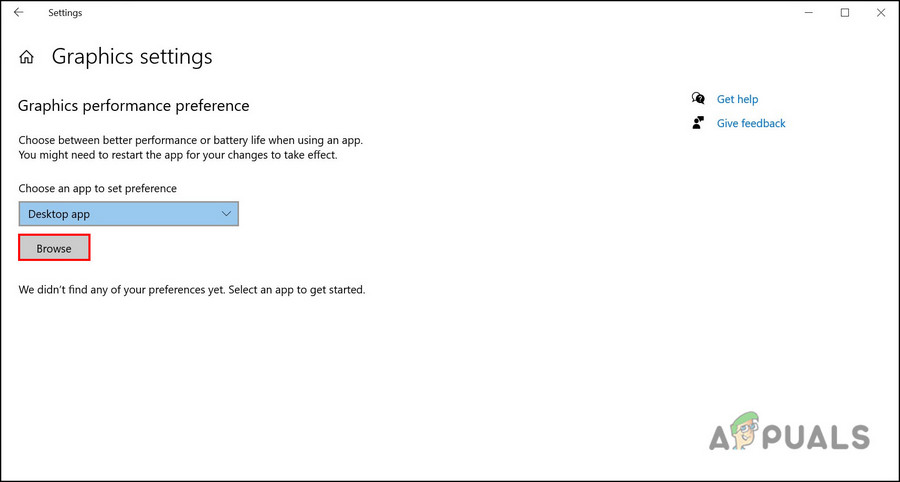 2. Click on the Browse button under Graphics performance preference.