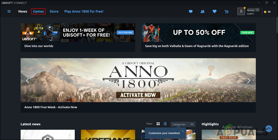 1. Access Ubisoft Connect PC and navigate to the games tab.