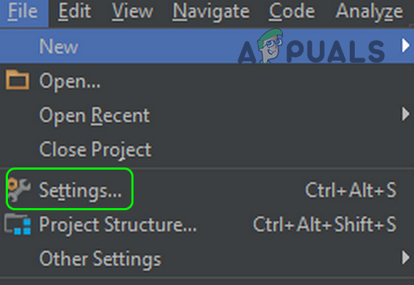 - Launch the Android Studio and expand its File menu.