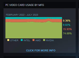 AMD, despite being cheaper is just not convincing gamers to make the shift to Radeon. NVIDIA’s software stack has been growing since Turing. AMD has alternatives such as FSR, although they remain inferior to NVIDIA, which is not a subjective fact.