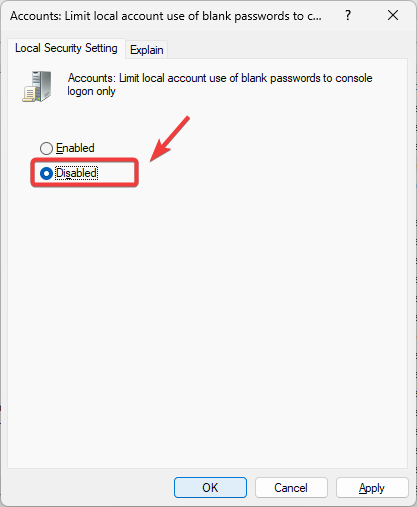 - Locate Accounts: Limit local account use of blank passwords to console logon only and double-click on it.