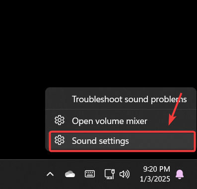 - Right-click the speaker icon in the bottom-right corner of your taskbar and select Sound Settings.
