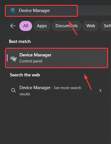 - Press the Windows key to open the Start Menu, type Device Manager, and press Enter to launch it.