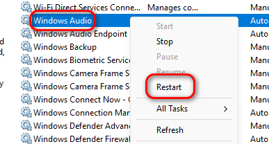 1. Restart the Windows Audio Service