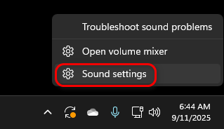 - Right-click the speaker icon in the taskbar.