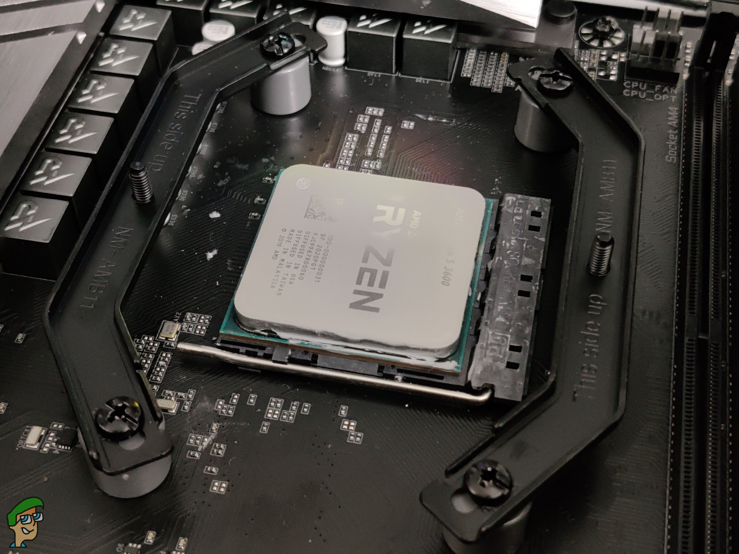 Installation is even easier on AMD thanks to the stock backplate. Just remove the retention module that is on the front side of the motherboard.