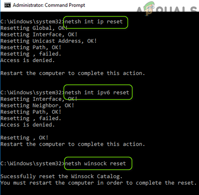 netsh int ip reset netsh int ipv6 reset netsh winsock reset
