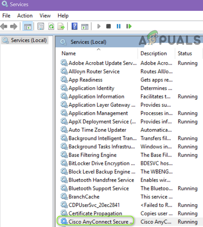 Open the Properties of the Cisco AnyConnect Service - Then click on the Stop button & apply your changes.