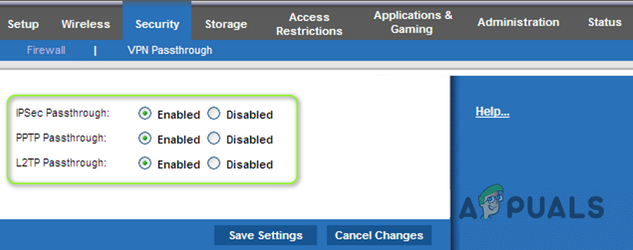 IPSec Passthrough PPTP Passthrough L2TP Passthrough