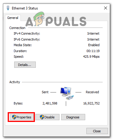 - Select the network adapter you’re using and click on the Properties button as shown in the image below.