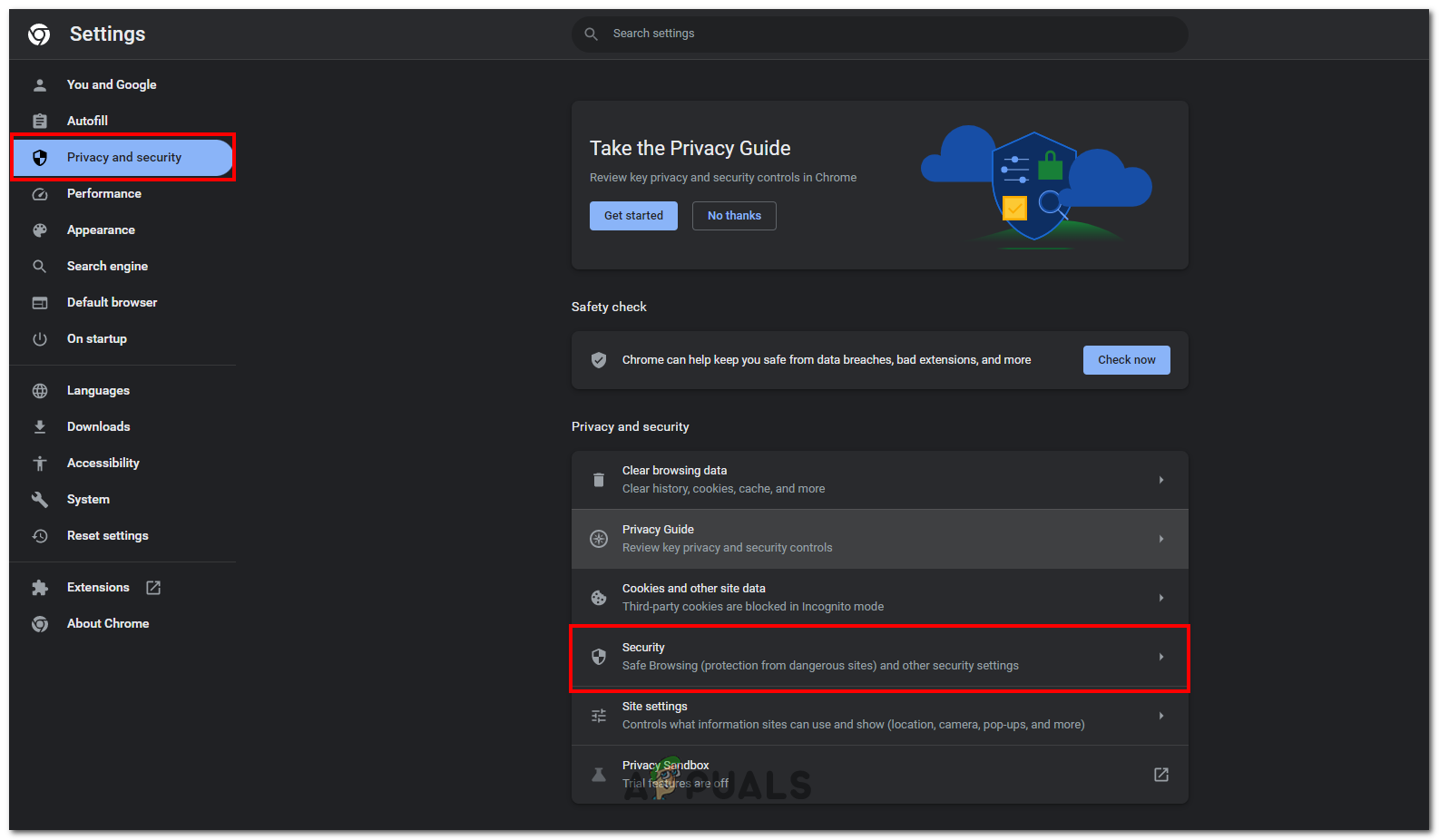 - Click on the “Privacy and Security” section located on the left side of the settings window, and then click on “Security.