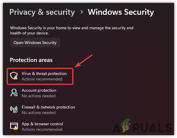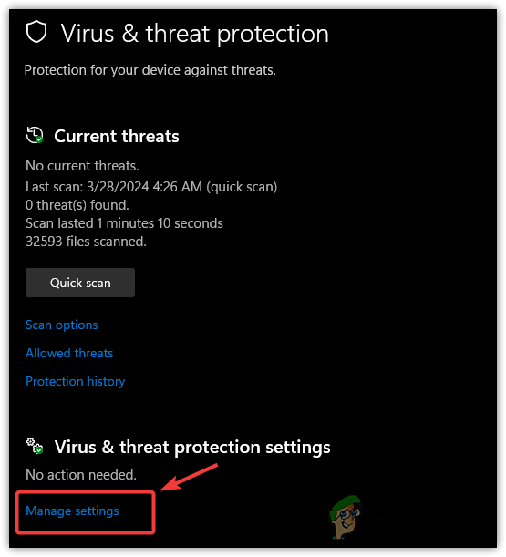 - Click on Manage Settings under Virus & Threat Protection Settings.