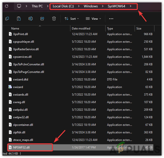 - Navigate to the extracted folder, copy the Npswf32.dll file, and paste it into the directory that corresponds with your operating system: