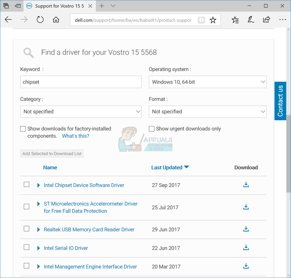 Few users solved their problem by installing or reinstalling chipset driver and Intel Management Engine. As always, we are recommending you to install and run drivers from an official vendor website, and not third party websites. For example, if you are using notebook Dell Vostro 5568, you will need to open Dell support and download the latest drivers, including chipset driver and Intel Management Engine. After you finish driver installation, do not forget to restart your Windows machine.