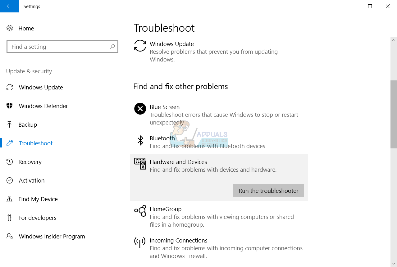 If methods above did not help you to solve the issue, you will need to run Hardware Troubleshooter tool which is integrated into Windows 10. Hardware Troubleshooter tool will try to automatically solve the issue by analyzing your Windows. We will show you how to run Hardware Troubleshooter tool on Windows 10. The procedure is similar on previous operating systems.