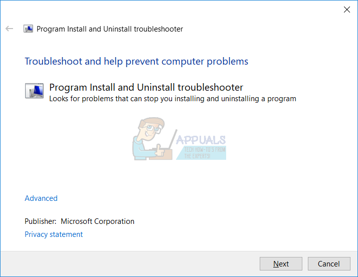 Microsoft developed software named FixIT which will help you to troubleshoot problem-related to installation or uninstallation of programs or drivers. In this method, we will download and run FixIT on Windows 10. This procedure is compatible with previous operating systems. If you want to learn more about FixIT, please check available information on this LINK.