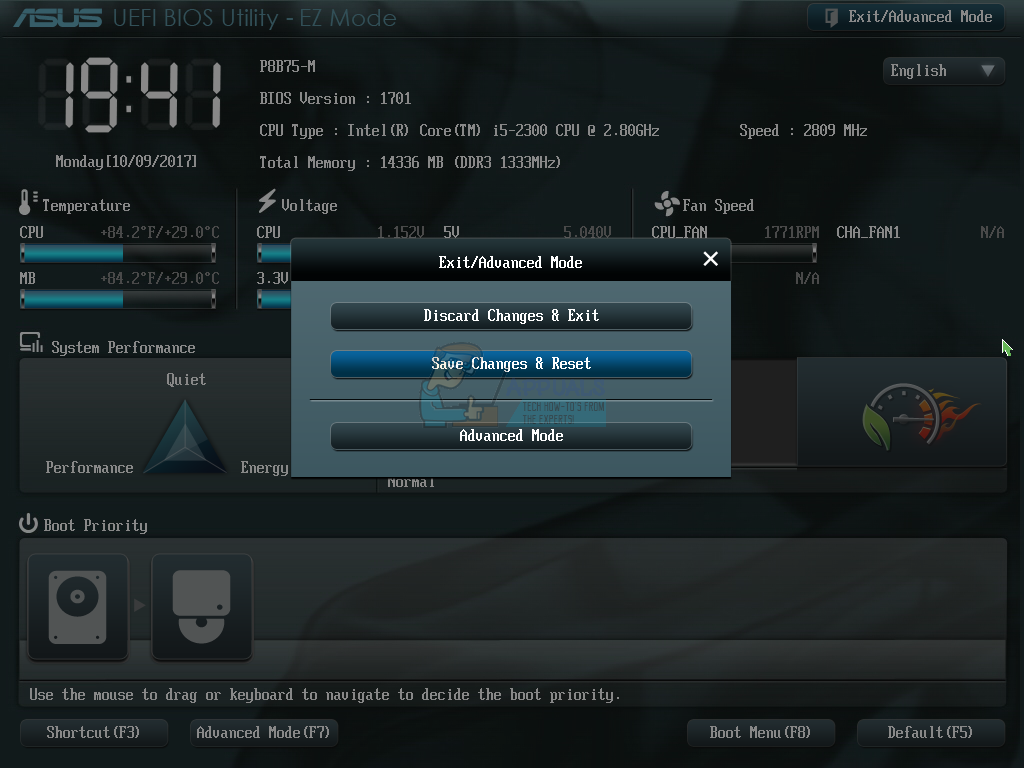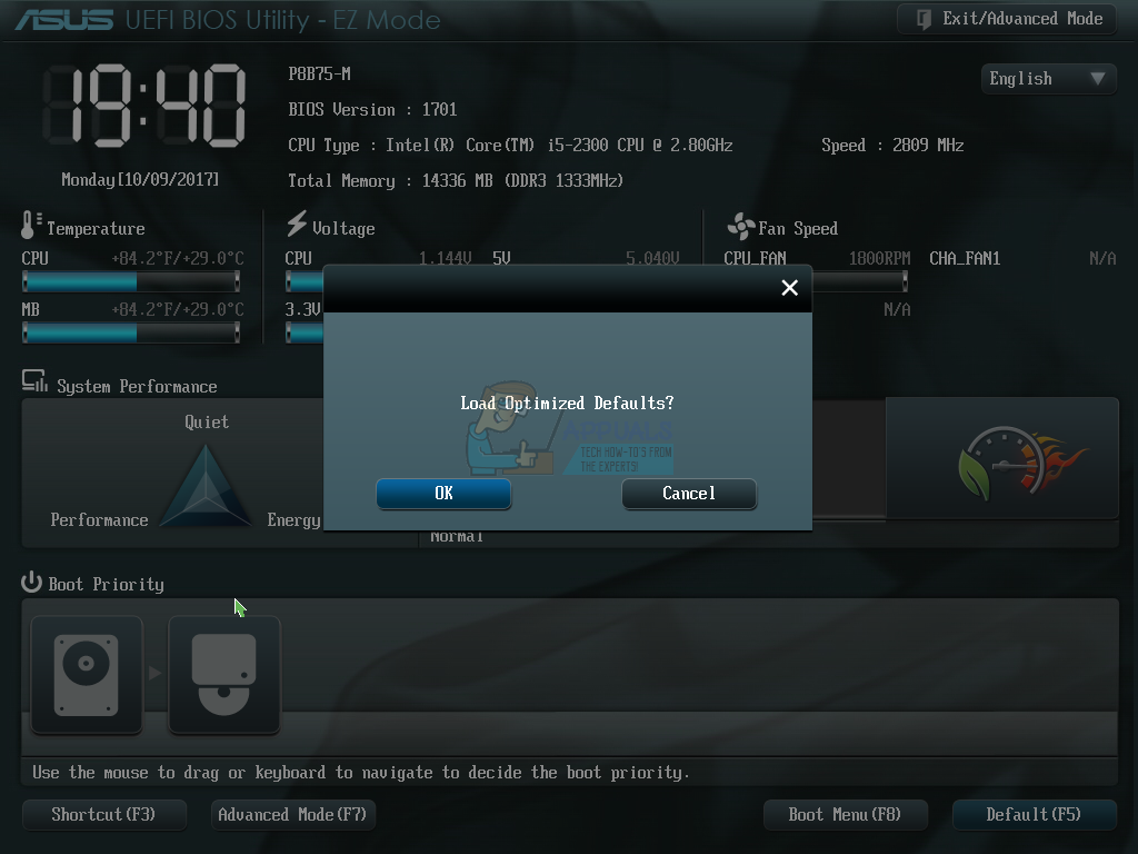 Wrong BIOS or UEFI configuration can make a lot of trouble to your machine, including a problem with detecting graphics card in Windows. In this method, you will need to reset BIOS or UEFI to default settings. We will show you how to do it on motherboard ASUS P8B75-M. As always, we are recommending you to read the technical documentation of your brand name computer, notebook or motherboard.