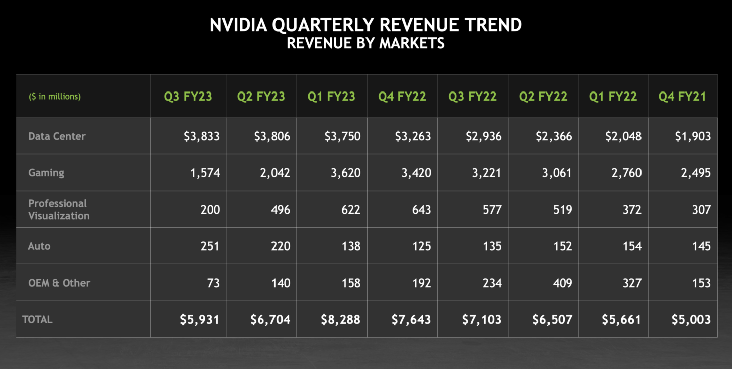 Importantly, though, and one of the reasons NVIDIA’s shares are rising in aftermarket trade, is the fact that its gaming and data centre revenue above expectations. Datacenter was NVIDIA’s saviour throughout the quarter as it emphasised the importance of revenue diversification for all businesses. The official numbers indicate that this segment’s sales was $3.9 billion, demonstrating for a fourth consecutive quarter that NVIDIA is no longer a gaming firm but a data centre corporation instead.