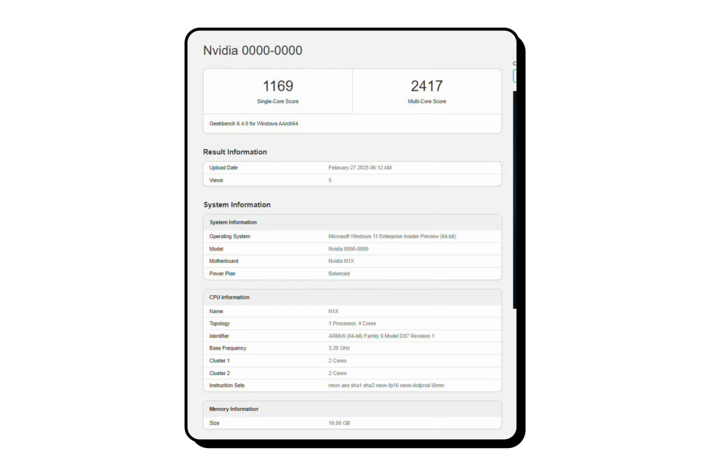 NVIDIA’s push into ARM-based SoCs for Windows has seen its first signs of life on Geekbench. In the last quarter of 2024, rumors were strong about Team Green co-engineering two chips with MediaTek, the N1X (2025) and the N1 (2026).