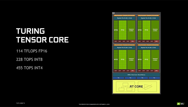 Once the network is trained, NGX delivers the AI model to your GeForce RTX PC or laptop via Game Ready Drivers and OTA updates. With Turing’s Tensor Cores delivering up to 110 teraflops of dedicated AI horsepower, the DLSS network can be run in real-time simultaneously with an intensive 3D game. This simply wasn’t possible before Turing and Tensor Cores.”