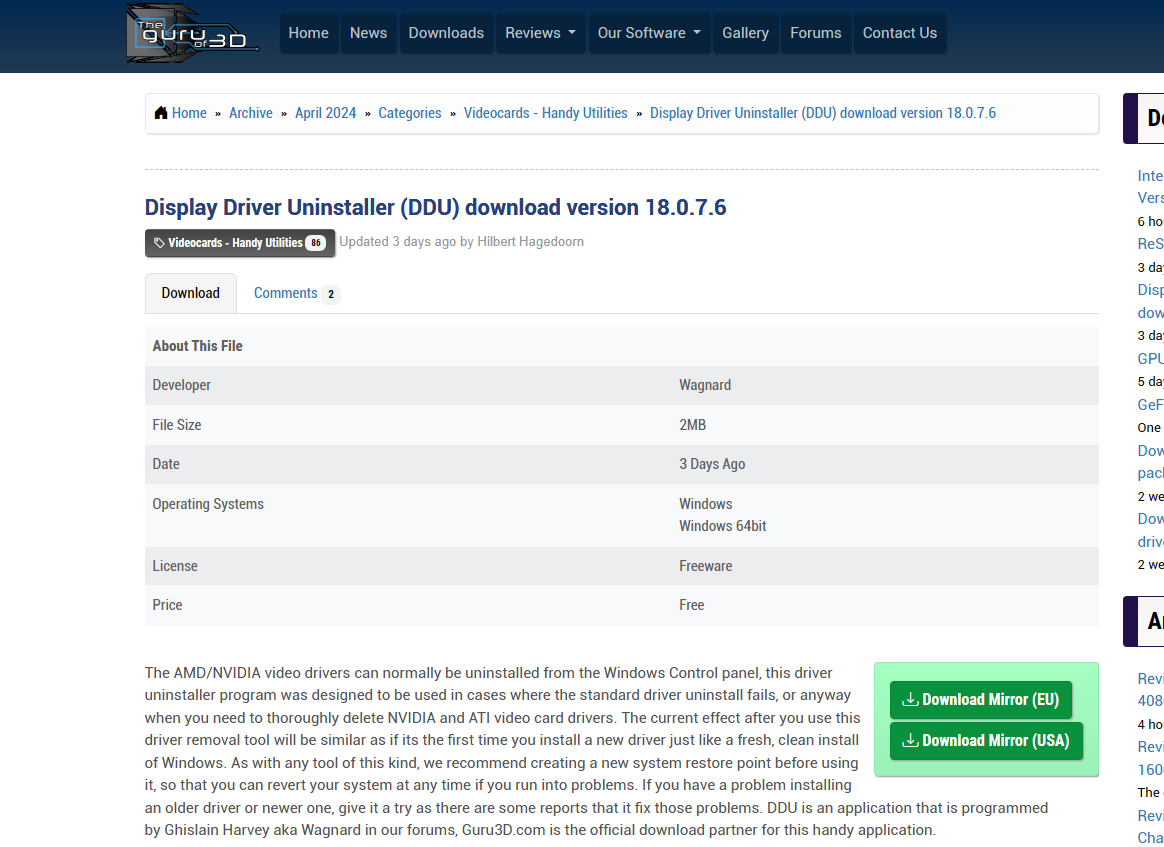 - Start the DDU exe in the extract folder.