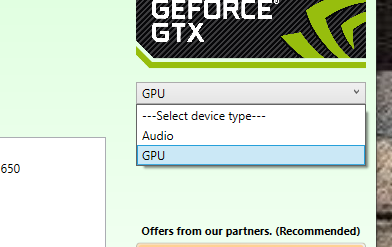 - Set Device type to GPU and the manufacturer to Nvidia.