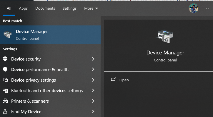 - Locate Device Manager in the Search box and open it.