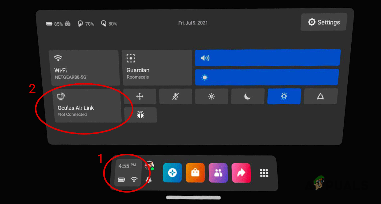 Pressing the Oculus Button on the Controller - Now from the menu shown, make your way to Settings.