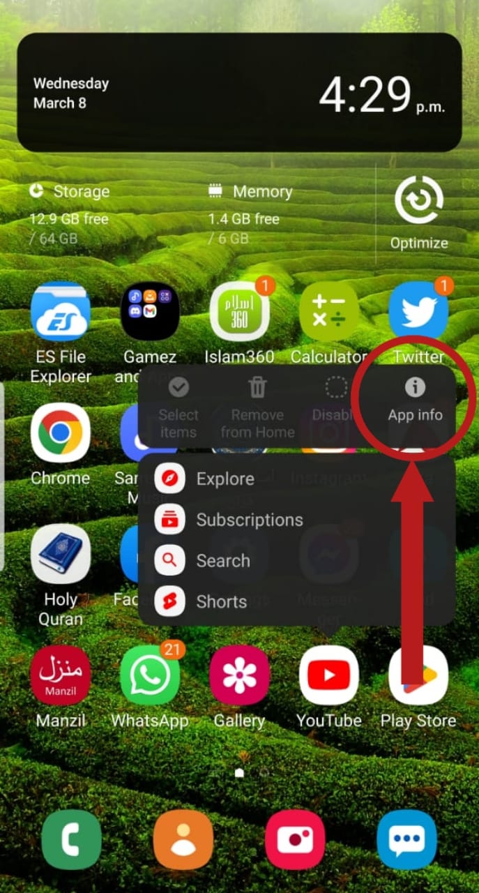 Occasionally, a few apps stop functioning properly due to a large amount of cache and data being accumulated. This may also be the case here for YouTube. To clear out YouTube’s cache and data, follow these simple steps: