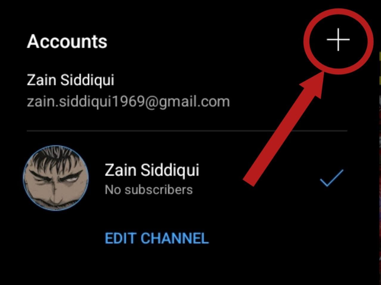 Scroll to find your Google account and select it - Once removed, close the YouTube app from the background. Launch it once more and add your Google account once again by pressing the profile picture and selecting the plus button.