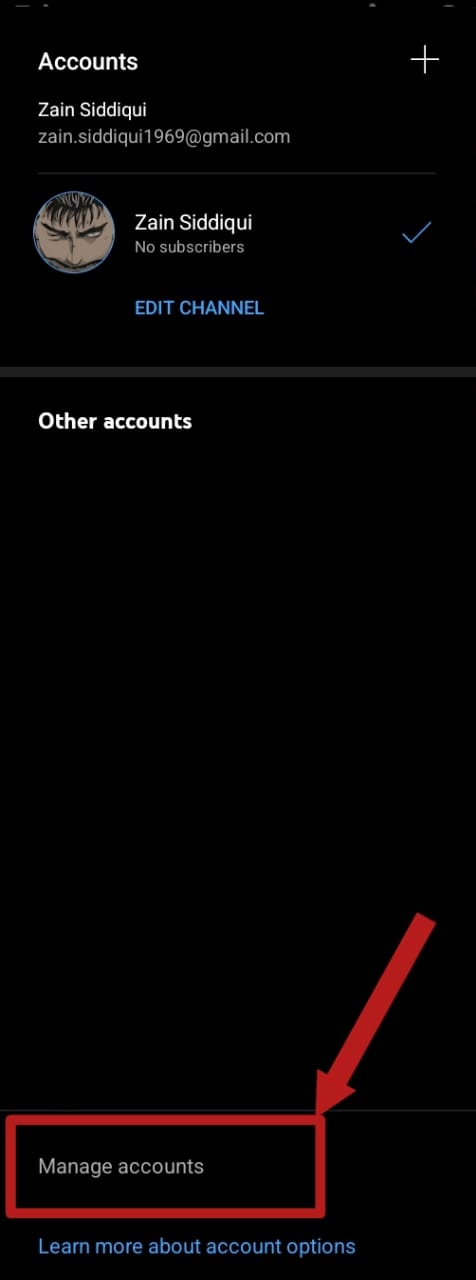 Press the arrow - Select “Manage Accounts”. It can be found at the bottom of the panel if you have multiple Google accounts. It will redirect you to the “Accounts” settings page of your device.