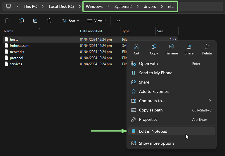 If Windows doesn’t allow you to save the file, you’ll need to take ownership permissions. Follow our complete guide on using the TAKEOWN command to take ownership of files and folders.