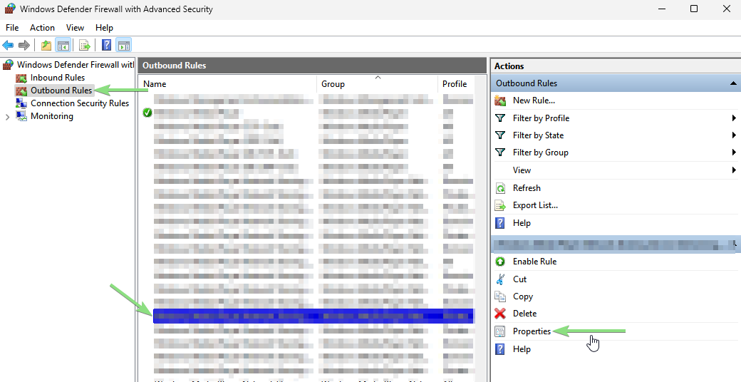- From the left sidebar, click on Outbound Rules to view the list of programs using internet connections.