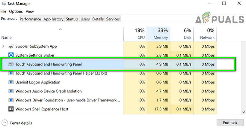 End Task of Touch Keyboard and Handwriting Panel - Then select End Task and check if the keyboard is working fine.