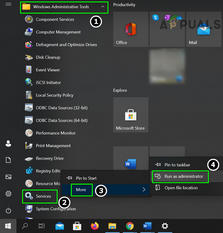 - Click on the Windows button and scroll down till you find the Windows Administrative Tools.
